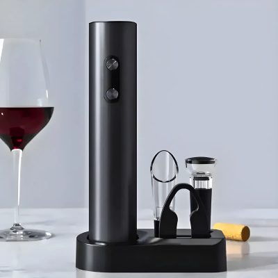 Apresentamos o abridor de vinho elétrico, uma solução moderna e eficiente para amantes de vinho. Com um design sofisticado e funcional, este dispositivo permite abrir garrafas em segundos, apenas pressionando um botão. Ideal para quem aprecia praticidade e elegância.