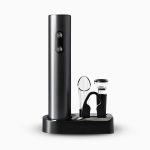 – Acompanha uma base de armazenamento que mantém o abridor, cortador, dosador e rolha organizados e acessíveis ao lado de sua geladeira ou rack de armazenamento.